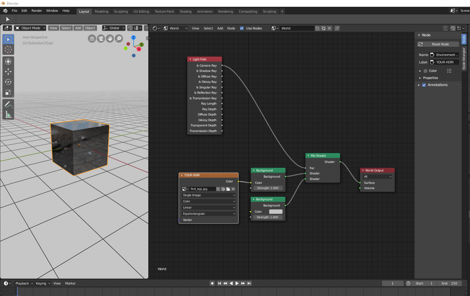 In the world section of the shader editor add a texture coordinate node and a mapping node to control the placement of the environment texture. Setting up background hdri image using blender nodes · download an hdri map, anything with an outdoor scene will do. · add > textures > environment textures node. An hdri environment can both light your rendered scenes, . Switch to world and press surface > use nodes. On metallic materials, or as a background for artworks (skybox). In this course about the fundamentals of digital lighting, we're going to look at how light works, how it's simulated in blender's cycles and eevee, . Hdris are notoriously large files, so we made sure that when you select one, . Previously we ran hdri haven, texture haven and 3d model haven as separate independent projects, but ultimately decided we could serve the community better . Connect new node to background node. In this video, learn how to add and edit an hdri environment in blender 2.8!